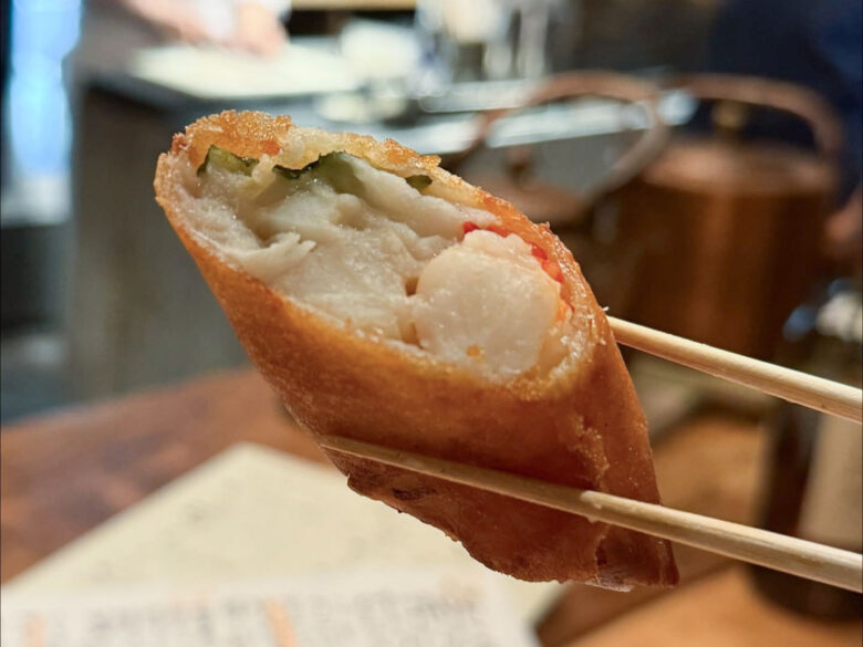こたつねこさんから「海老と帆立と蓮根の春巻き」