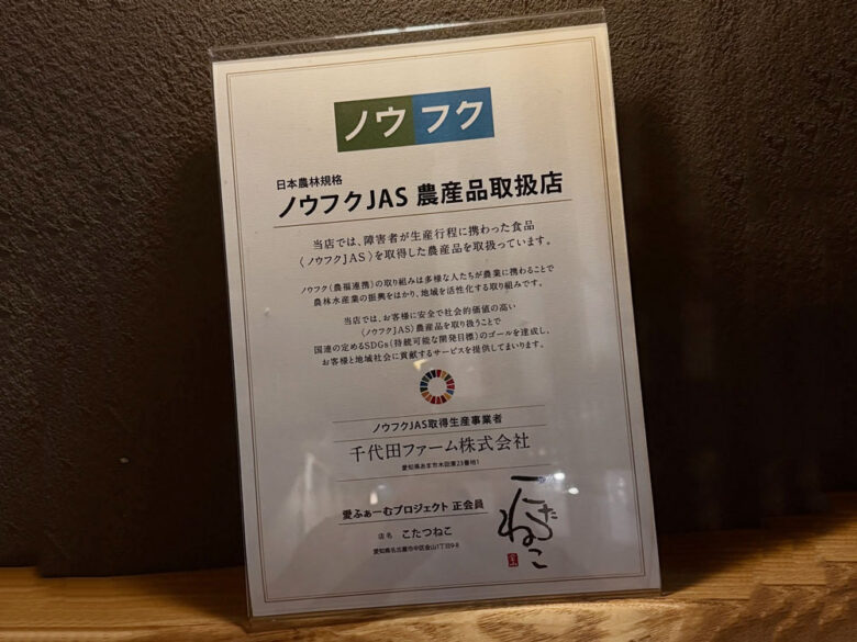 農林水産省の外郭団体による「ノウフクJAS」認証により、障がい者の農産物を扱う飲食店は公的に証明されます。