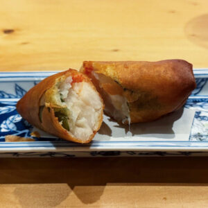 こたつねこさんから「海老と帆立と蓮根の春巻き」